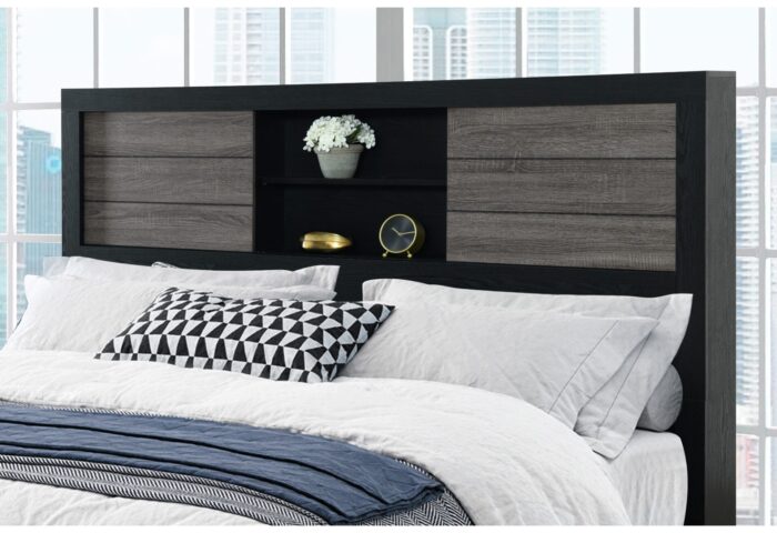 LISBON GREY/BLACK BOOKCASE QUEEN BED GROUP